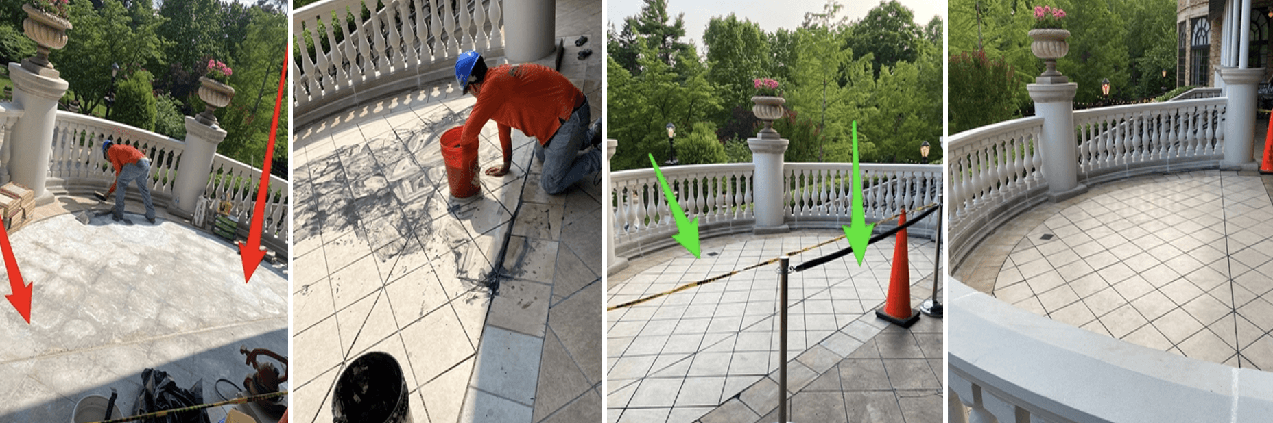 As the property is soon approaching its centennial anniversary, normal wear and tear is to be expected. When the Omni Shoreham Property Manager was notified of cracked and broken tiles on the first-floor balcony, he reached out to the ProXpress team to quickly complete repairs. Most importantly, the broken tiles were a safety hazard as hotel guests and staff could easily trip and fall.