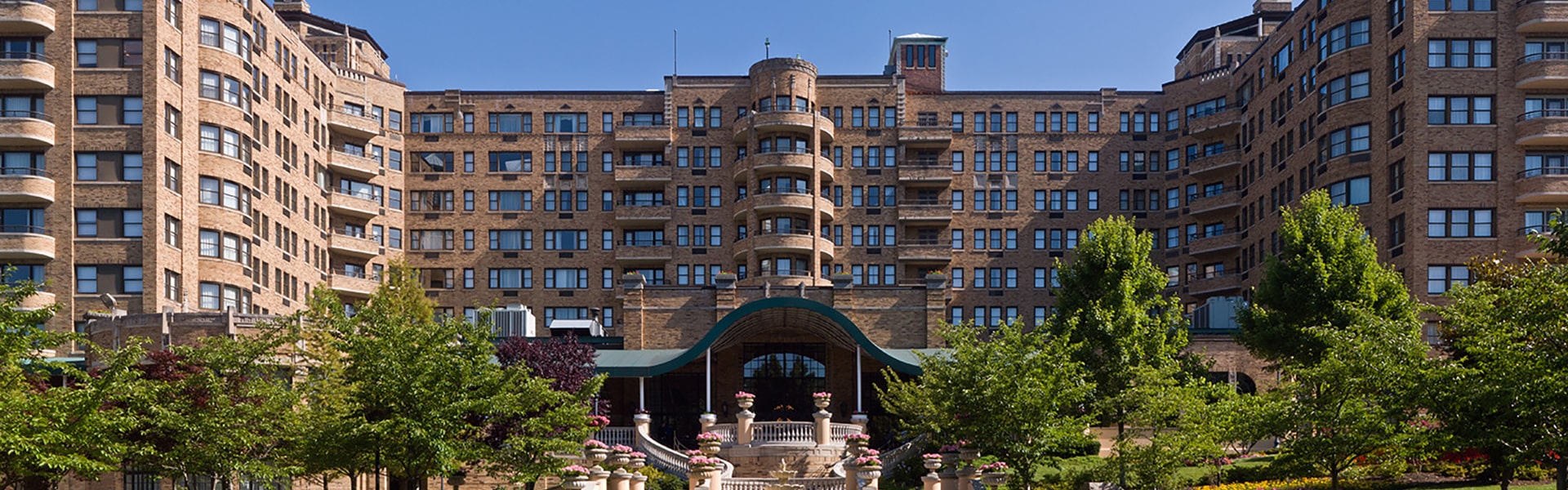 Located in one of Washington D.C.’s premier residential neighborhoods, the Omni Shoreham Hotel is an icon among the hotels in the area, having hosted twelve U.S. Presidents, world leaders, and inaugural balls since it was built in 1930. The back entrance of the historic hotel features a stunning circular balcony on the first floor that is perfect for guests to take in the sights of the property’s fountain and lush gardens.